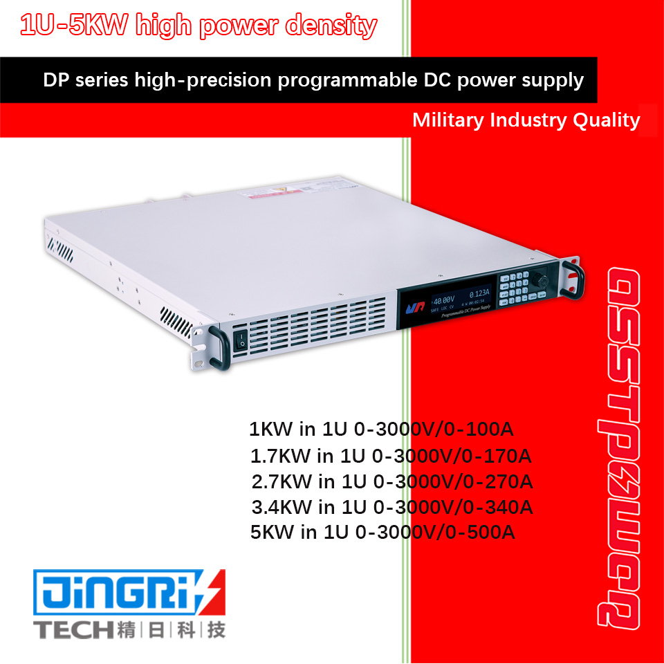 DP series high-precision programmable DC power supply is a cost-effective product with high-quality, high-power-density, multi-function, launched by our company to meet the needs of our customers. The maximum power of 1U model can reach 5KW, and the weight is only 7.5Kg. The specification voltage of this series of products can reach up to 3050V, and the maximum current can reach 525A. It built-in PFC power factor correction circuit, and the input voltage can meet the wide range of applications in the global power grid.