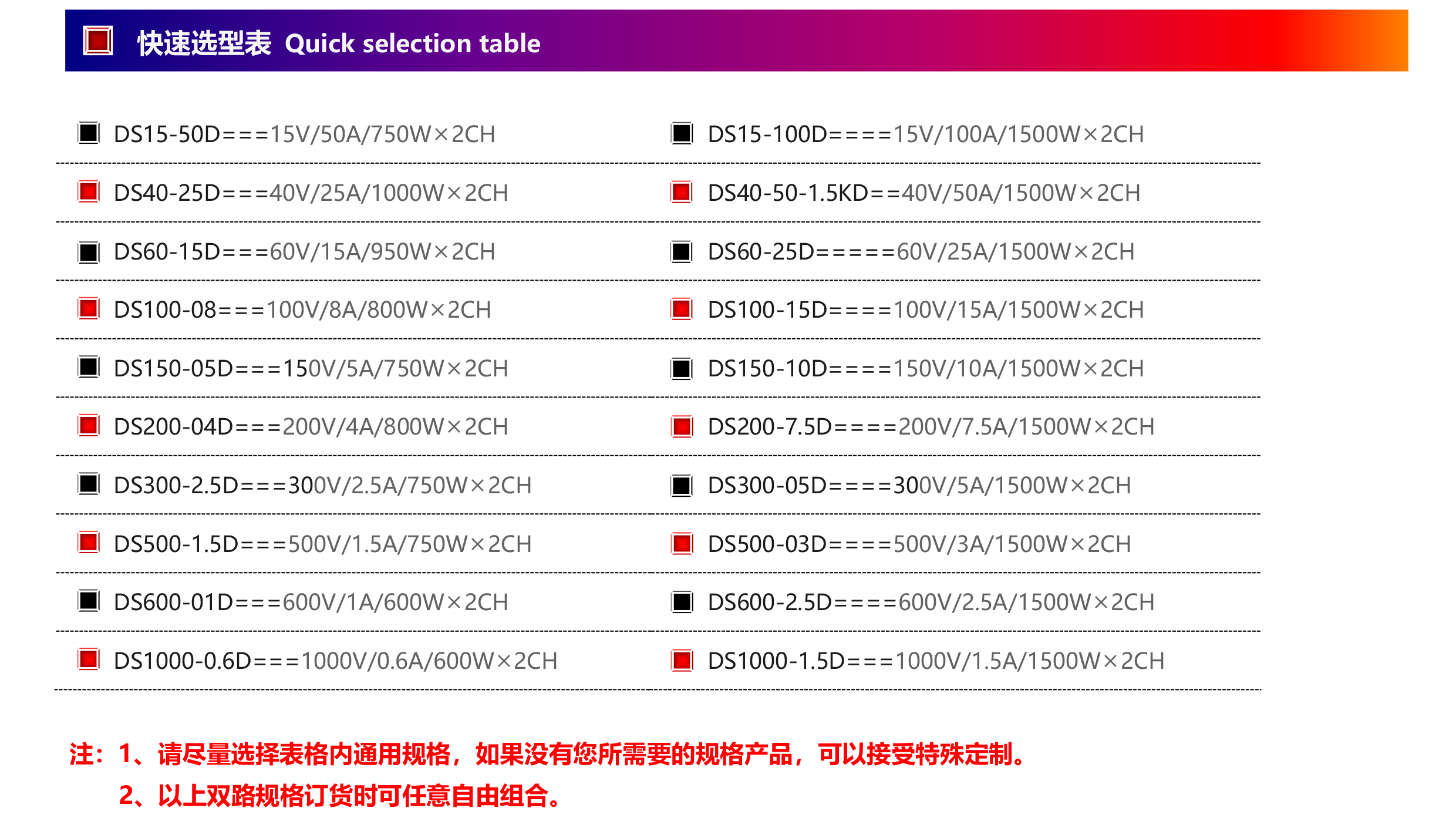 DS雙路系列高精度可編程直流電源是我公司為了滿足廣大客戶的需求推出的一款高品質(zhì)、高功率密度、多功能的高性價比產(chǎn)品,雙路獨(dú)立顯示,獨(dú)立控制,總功率最大3000W的功率密度僅1U尺寸,每路電壓最高可到1000V,電流最大可到100A,輸入工作電壓支持交流與直流兩種模式,是需要寬范圍輸出電壓或電流范圍調(diào)節(jié)應(yīng)用的理想輸出,具有恒電壓CV和恒電流CC兩種工作模式??梢詰?yīng)用在自動測試,過程控制,電池充電及老化測試等需要高質(zhì)量直流穩(wěn)定電源的產(chǎn)場合,本系列產(chǎn)品具有零電壓“軟開關(guān)”功能,可實減小開關(guān)瞬變應(yīng)力,從而具有很低的輸出噪聲。軟開關(guān)也可以提高效率,減小熱量,從而使電源具有更高的穩(wěn)定性。